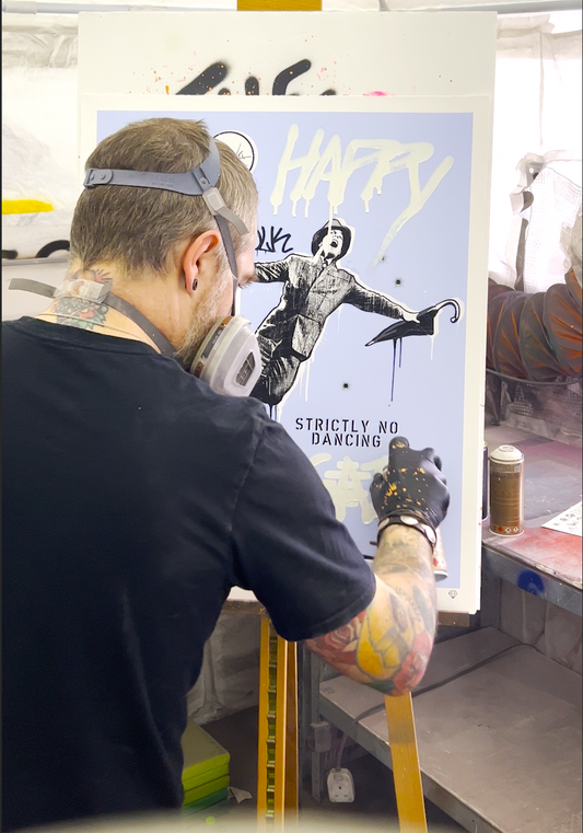 Happy Again (Blue) - Hand Embellished Screen Print by JJ Adams