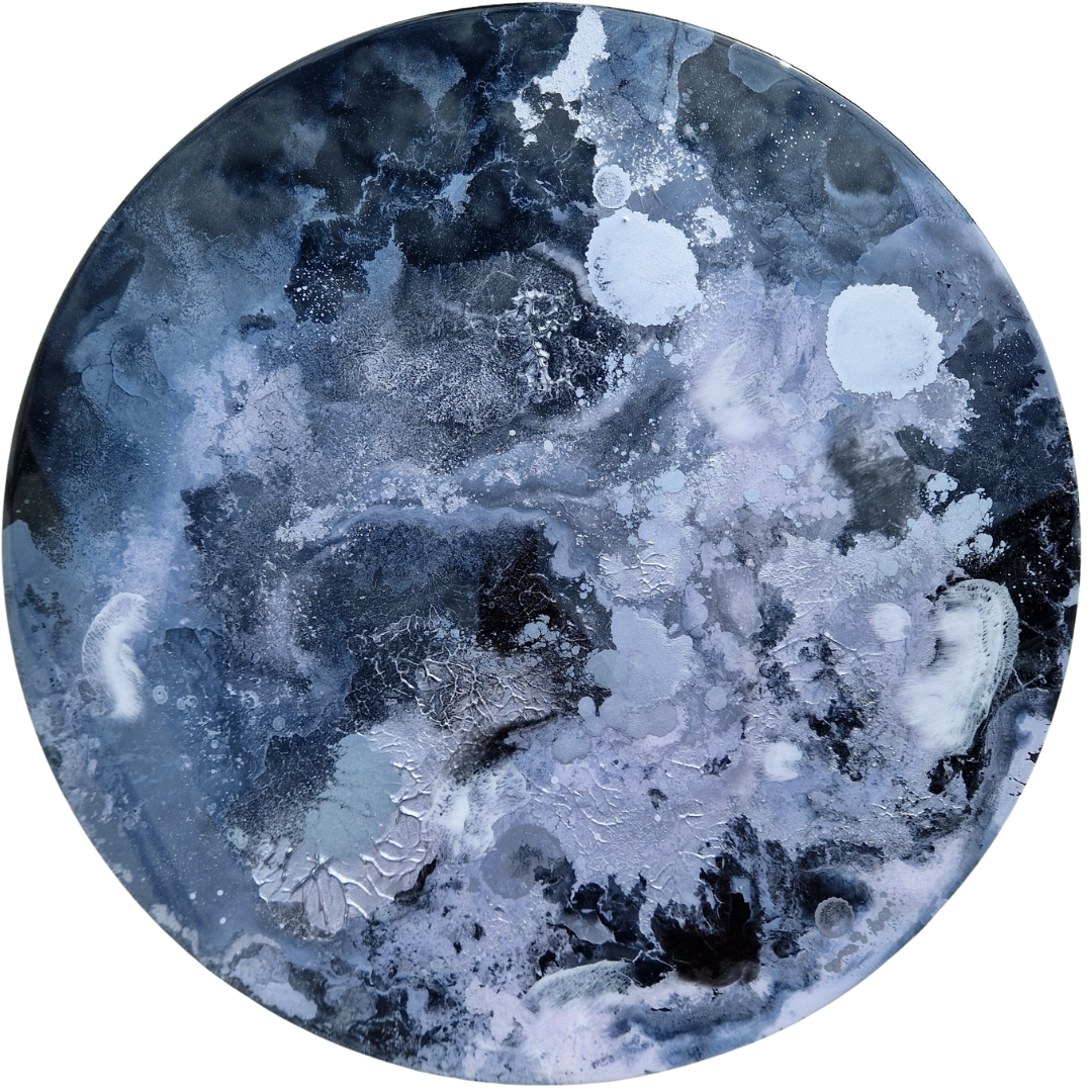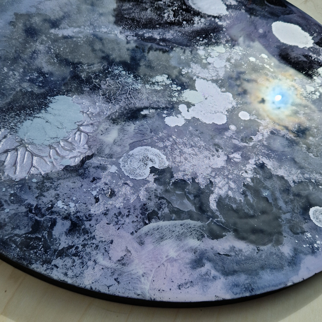Medium: multilayer original resin and mixed media on an aluminium museum grade art circular panel