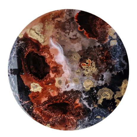 Medium: multilayer original resin and mixed media on an aluminium museum grade art circular panel