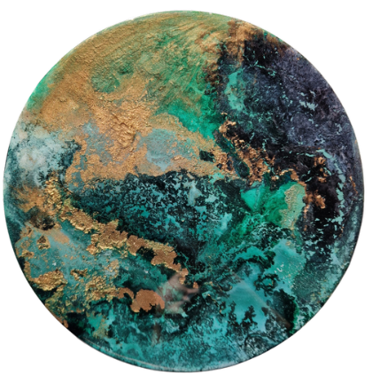 Medium: multilayer original resin and mixed media on an aluminium museum grade art circular panel