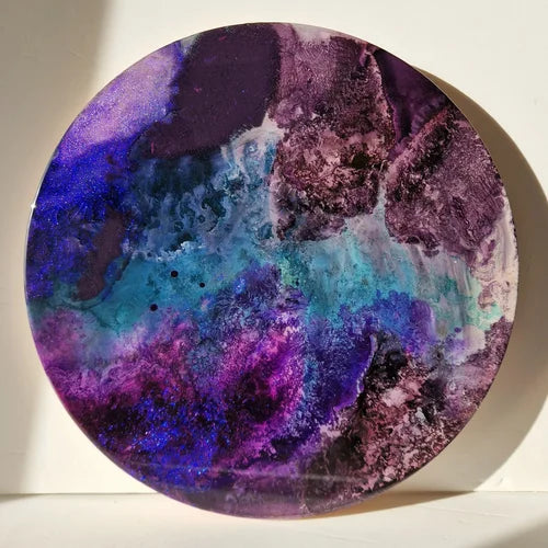 Medium: multilayer original resin and mixed media on an aluminium museum grade art circular panel