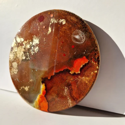 Medium: multilayer original resin and mixed media on an aluminium museum grade art circular panel